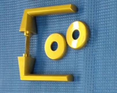 中古物件再販売のための既存ドアノブの表面がキズだらけだったので、下地をならしてウレタン吹付塗装して綺麗にした補修事例になります。