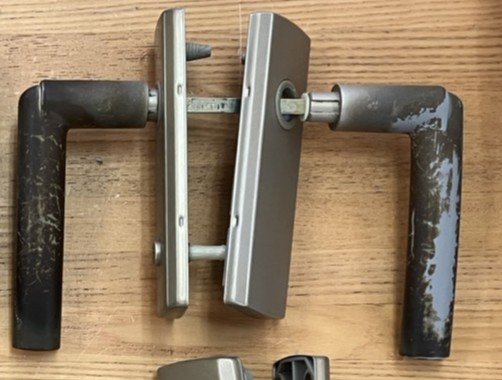 レバーハンドルの表面が傷んできており、買取再販売するにも見た目が悪いので、何とかしたい、との問い合わせをいただきました。