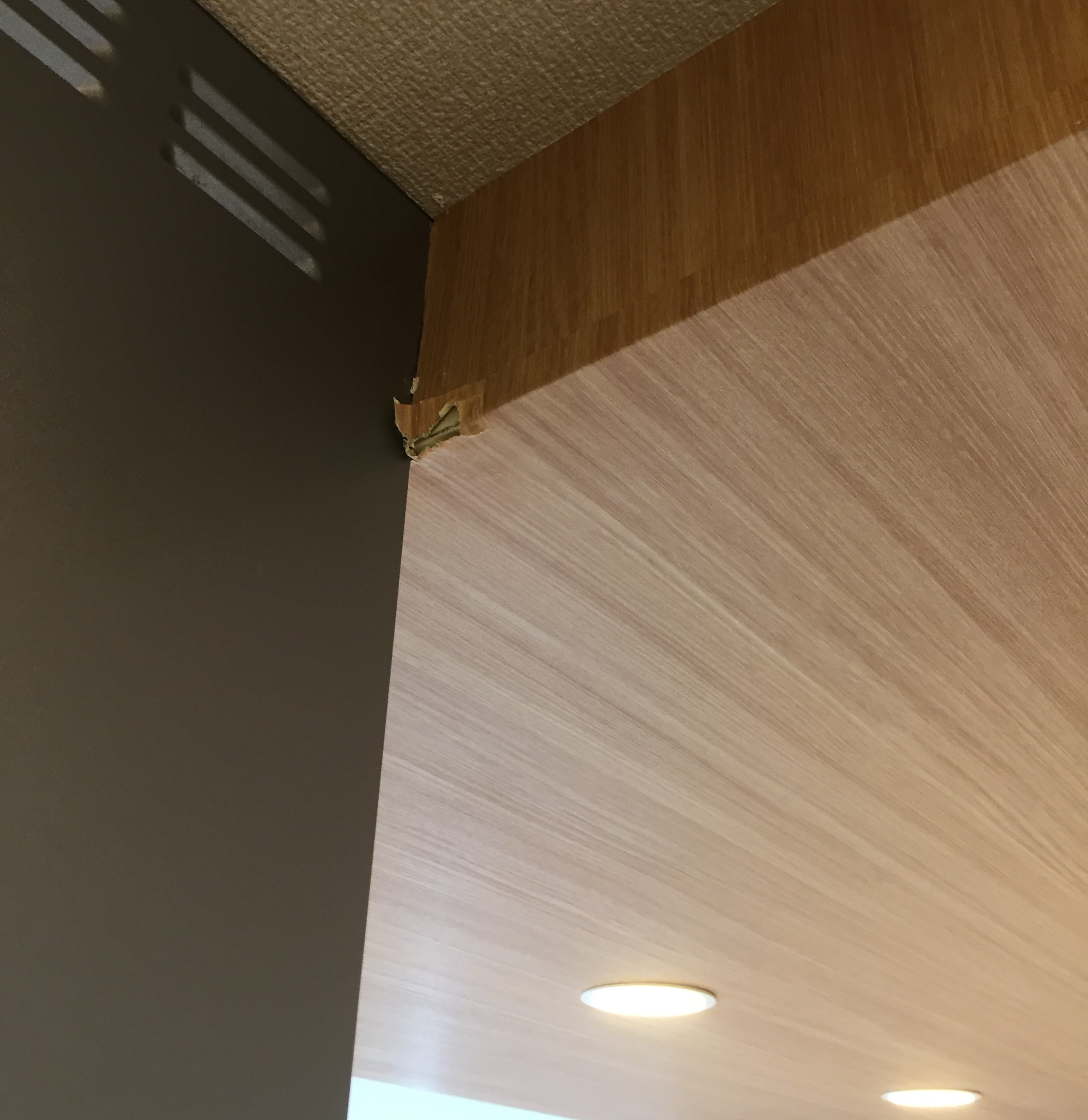 レンジフードを取り付ける際に天井の木目調シートを傷つけてしまったので、綺麗に補修してほしい。