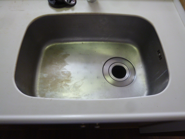 再販物件のリフォーム工事において、特殊研磨により流し台のステンレスシンクを綺麗にしてほしいとのご依頼です。