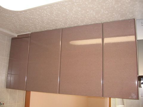 収納の扉は写真のように下地処理をした後にシート貼り施工にてお好みの素材にリフォームすることができます。なお、弊社ではシンク研磨や天板の研磨に加え、各所補修も行っております。